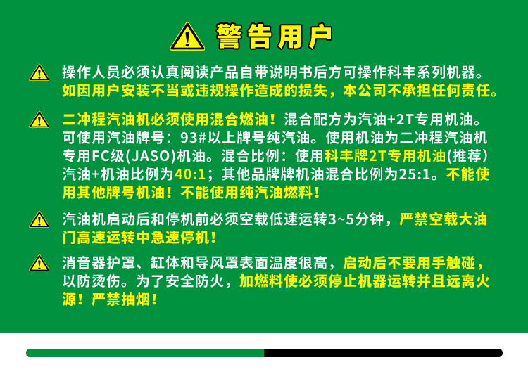 ■ 科豐二沖程引擎,低油耗,大扭矩適合多數(shù)場(chǎng)合作業(yè)。