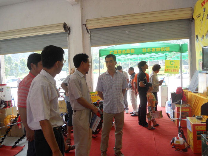 陳華富副巡視員在講話中指出,目前廣東省51個山區(qū)縣(市、區(qū))綜合農(nóng)機(jī)化水平均不到40%,遠(yuǎn)低于58.3%的全省平均水平,希望通過這次展示展銷活動,讓廣大丘陵山區(qū)農(nóng)民認(rèn)識、使用性能可靠、安全性高、輕型簡便的小型農(nóng)機(jī)具,降低勞動強(qiáng)度,促進(jìn)丘陵山區(qū)農(nóng)機(jī)化發(fā)展。辦好農(nóng)機(jī)專業(yè)市場,為農(nóng)機(jī)專業(yè)合作組織、農(nóng)機(jī)企業(yè)、推廣、科研部門及廣大山區(qū)農(nóng)民搭建一個交流、互動的平臺,為丘陵山區(qū)農(nóng)機(jī)化的可持續(xù)發(fā)展提供長效的保障。省農(nóng)業(yè)廳總農(nóng)藝師陸國煌同志,省農(nóng)業(yè)廳農(nóng)機(jī)化辦主任鄭宏宣同志,省綠色食品辦公室、云浮市農(nóng)業(yè)局、郁南縣委縣政府有關(guān)單位領(lǐng)導(dǎo)、桂林高新區(qū)科豐機(jī)械有限公司及其它農(nóng)機(jī)生產(chǎn)廠家、經(jīng)銷商,還有來自省內(nèi)新聞媒體的記者朋友等約1000人出席。