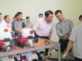 在觀看了公司的宣傳光碟后,徐副市長對(duì)公司的發(fā)展歷史、產(chǎn)品的特性、公司目前的發(fā)展規(guī)模,以及公司未來的發(fā)展方向有了一個(gè)全面的了解。同時(shí),徐副市長還對(duì)公司的主導(dǎo)產(chǎn)品4G-25型斜掛式收割機(jī)的小巧輕便、一機(jī)多用的特點(diǎn)表現(xiàn)出非常濃厚的興趣,認(rèn)為這種產(chǎn)品目前有著非常廣大的市場(chǎng)前景。并殷切地鼓勵(lì)公司負(fù)責(zé)人說:“在當(dāng)前的形式下,農(nóng)機(jī)生產(chǎn)企業(yè)要抓住機(jī)遇,不斷挑戰(zhàn),不斷強(qiáng)化質(zhì)量意識(shí)!泵銊(lì)公司保護(hù)好公司固有的專利技術(shù),針對(duì)機(jī)器的特點(diǎn)和性能,根據(jù)目前市場(chǎng)上的需求,因地制宜地做好產(chǎn)品技術(shù)創(chuàng)新工作,加大技術(shù)創(chuàng)新力度,做好產(chǎn)品銷售和“三包”服務(wù)工作,在讓農(nóng)民群眾得到實(shí)惠的同時(shí),進(jìn)一步把企業(yè)做大做強(qiáng),為地方經(jīng)濟(jì)社會(huì)發(fā)展做出貢獻(xiàn)。